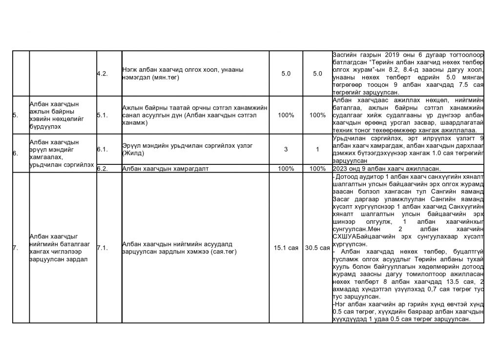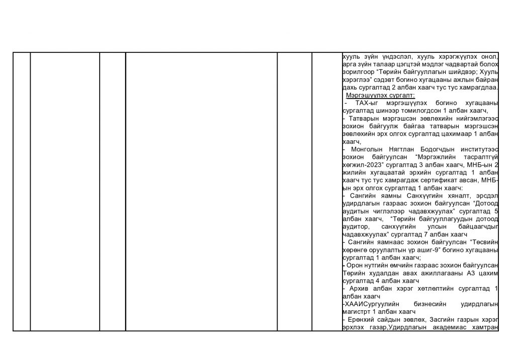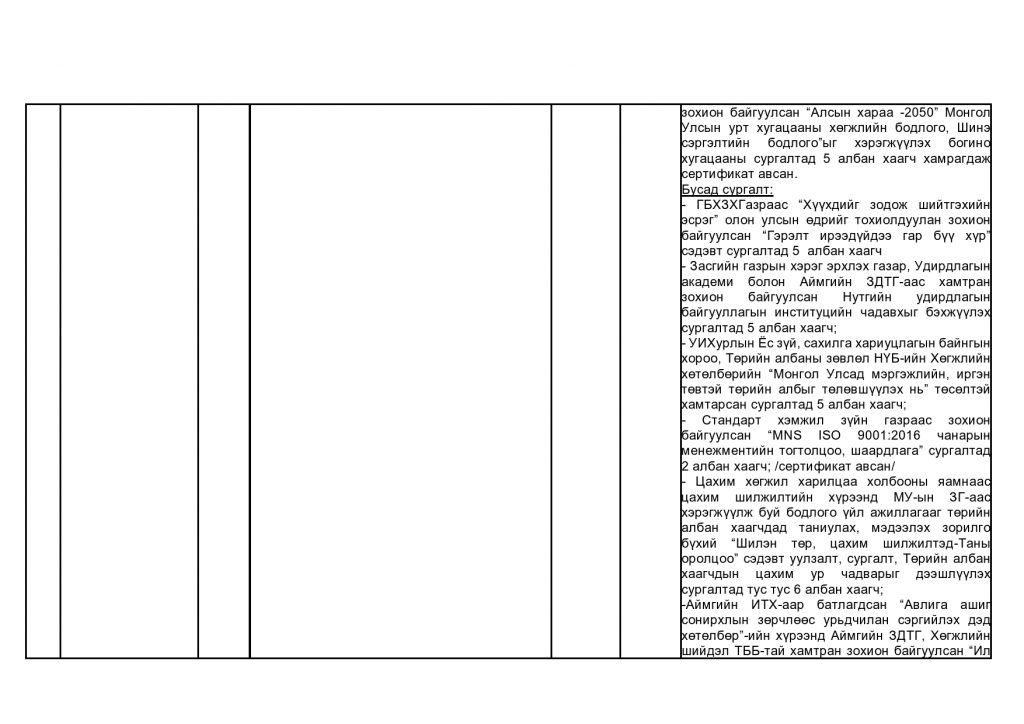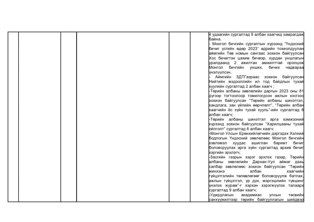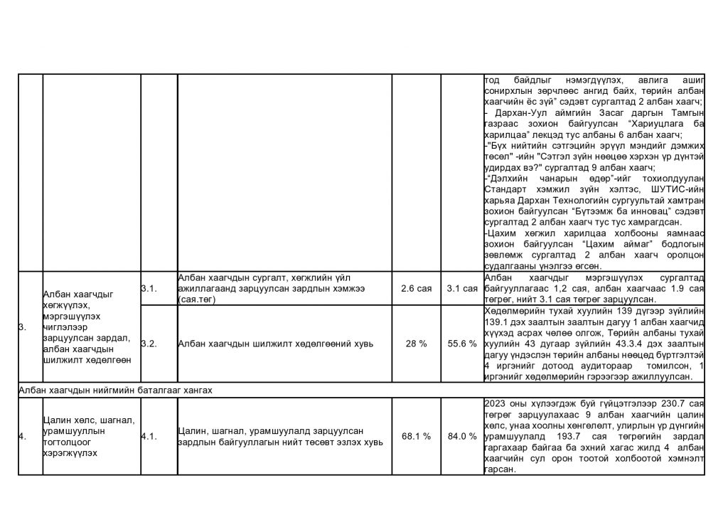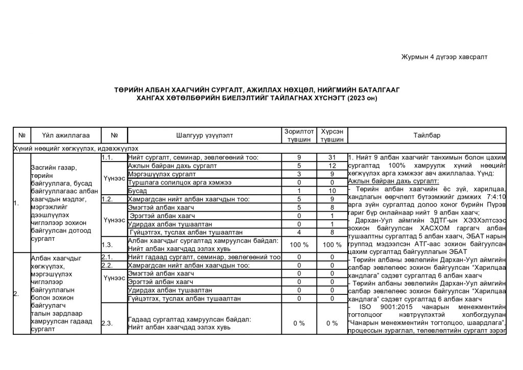 ТӨРИЙН АЛБАН ХААГЧИЙН СУРГАЛТ, АЖИЛЛАХ НӨХЦӨЛ, НИЙГМИЙН БАТАЛГААГХАНГАХ ХӨТӨЛБӨРИЙН БИЕЛЭЛТ /2023 ОН/ Post published:12 сар 11, 2023 Post category:ҮЙЛ АЖИЛЛАГААНЫ ТӨЛӨВЛӨГӨӨ You Might Also Like МЭНДЧИЛГЭЭ 4 сар 30, 2024 2022 ОНЫ 3 САР 3 сар 25, 2022 Мэдээллийн ил тод байдал, нээлттэй байдлын тайлан 6 сар 13, 2025
