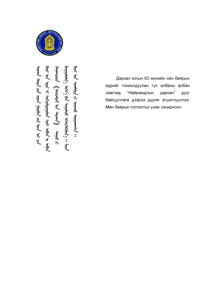 “Найрамдлын дархан” сүлд дуугаа эгшиглүүллээ. Post published:10 сар 17, 2024 Post category:Мэдээ мэдээлэл You Might Also Like САНХҮҮГИЙН ХЯНАЛТ, ДОТООД АУДИТЫН АЛБАНЫ 2023 ОНД ХИЙХ ХЯНАЛТ ШАЛГАЛТЫН ТӨЛӨВЛӨГӨӨ 1 сар 4, 2023 9. Байгууллагын хэрэглэгч тайлан оруулах – File хавсаргах 12 сар 2, 2022 МЭНДЧИЛГЭЭ 7 сар 25, 2024