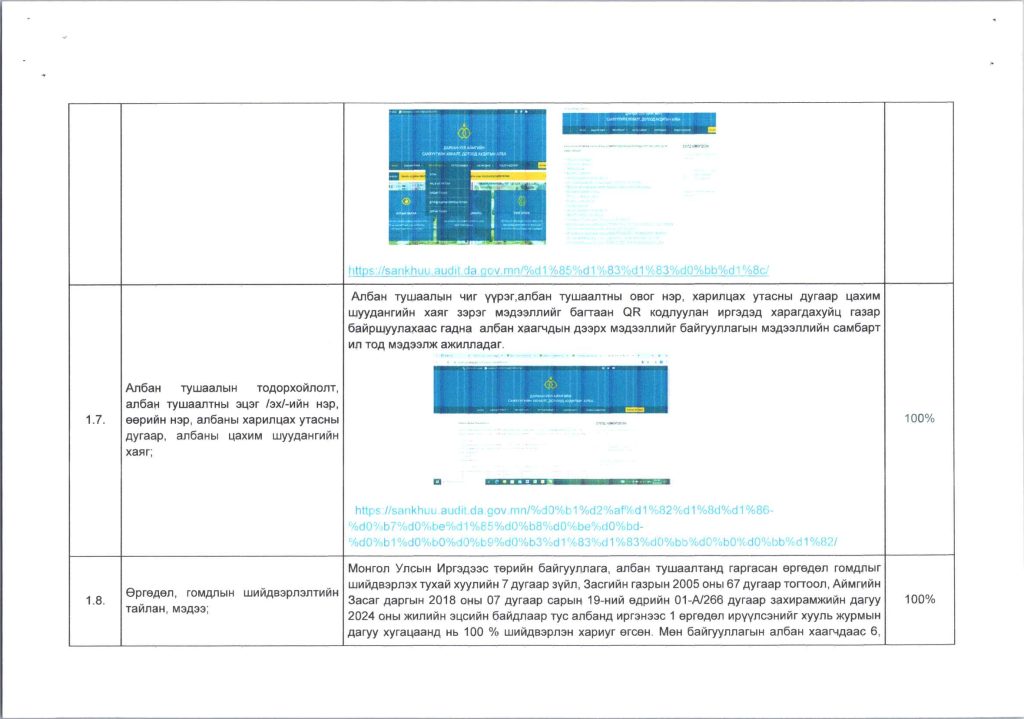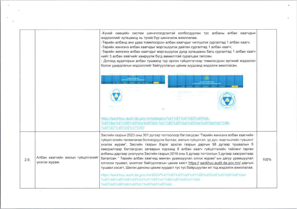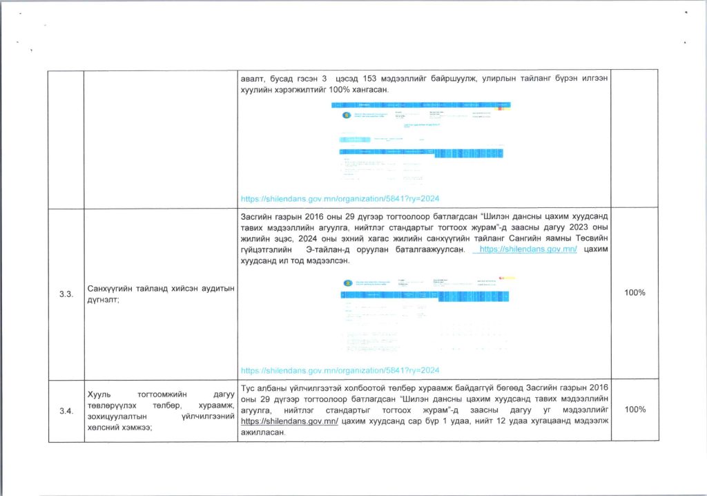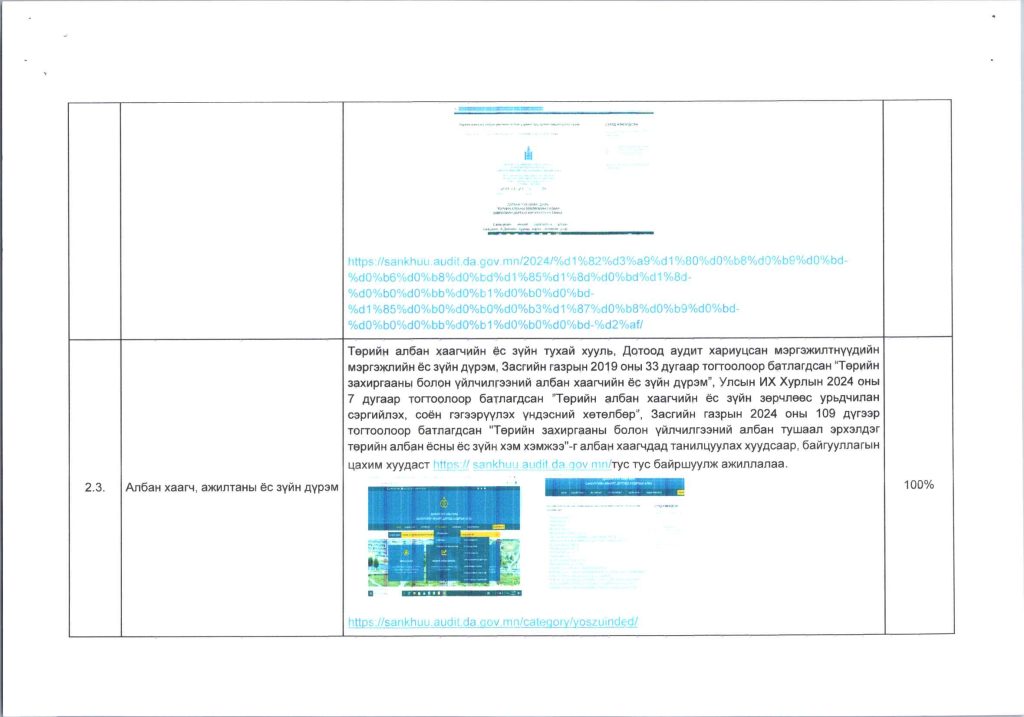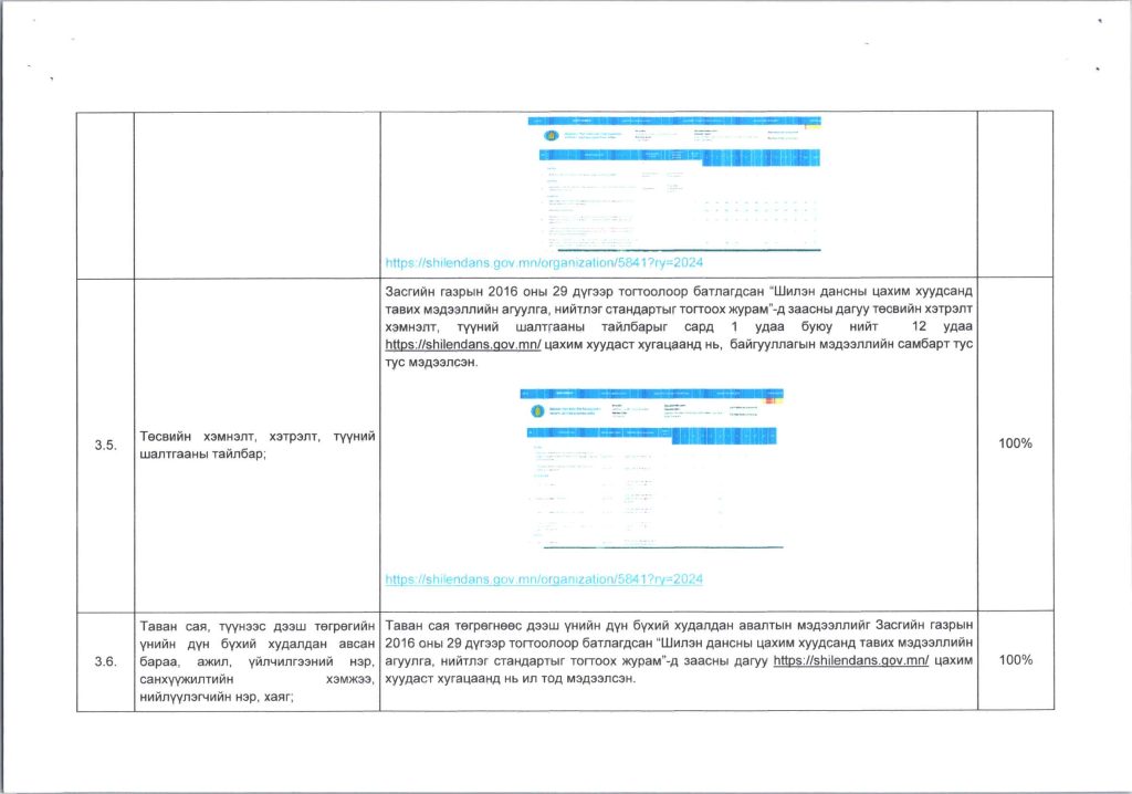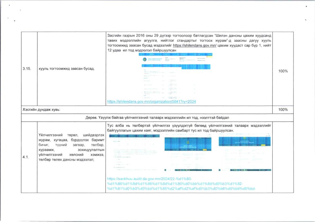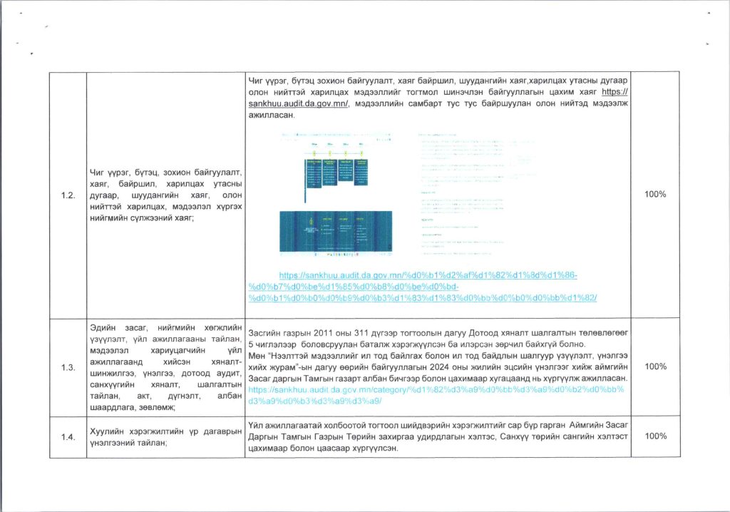 Мэдээллийн ил тод, байдлын хэрэгжилт Post published:12 сар 9, 2024 Post category:ҮЙЛ АЖИЛЛАГААНЫ ТӨЛӨВЛӨГӨӨ You Might Also Like ШИНЭТГЭЛЭЭР ТҮҮЧЭЭЛСЭН САЛБАР ЗӨВЛӨЛ 5 сар 1, 2025 Шилэн дансны хуулийн хэрэгжилт, шинэчилсэн цахим хуудасны талаарх сургалтыг боловсролын салбарын нягтлан бодогчдод хийлээ. 5 сар 8, 2023 “Нийтийн мэдээллийн ил тод байдлын тухай хууль”-ийн сургалтад хамрагдлаа. 5 сар 29, 2023