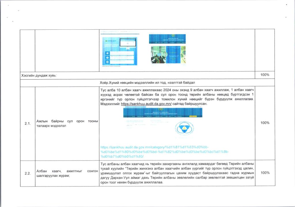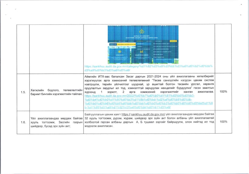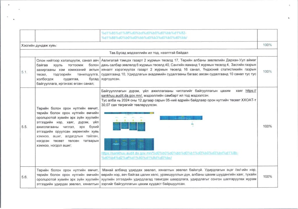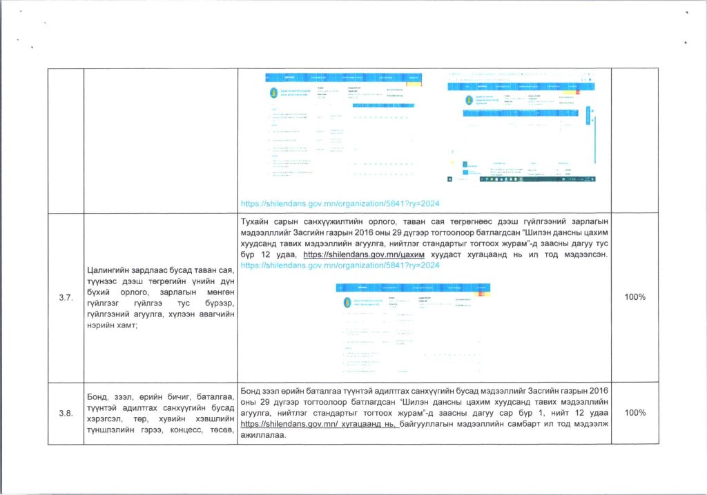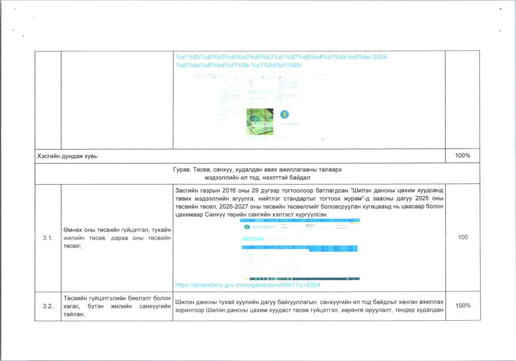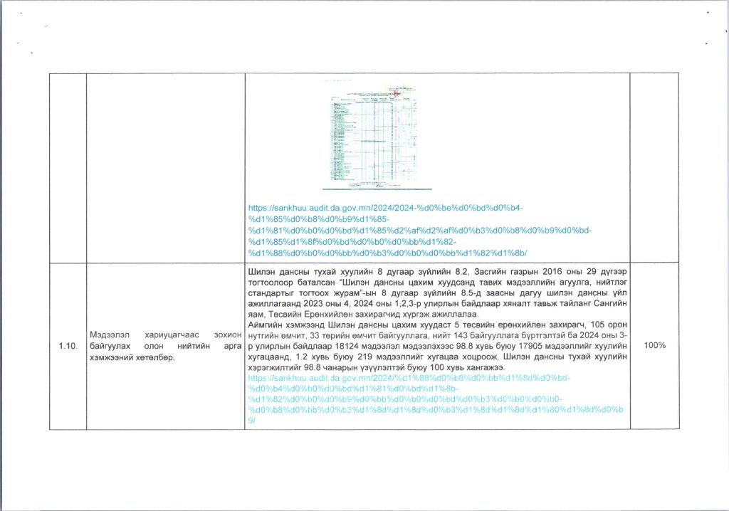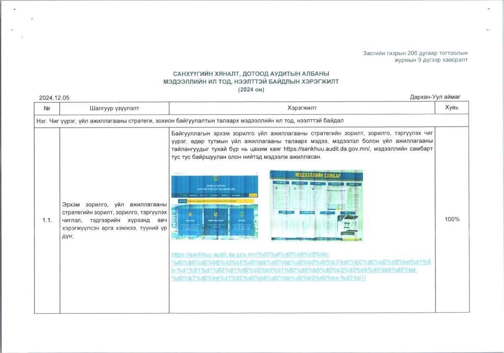 Мэдээллийн ил тод, байдлын хэрэгжилт Post published:12 сар 9, 2024 Post category:ҮЙЛ АЖИЛЛАГААНЫ ТӨЛӨВЛӨГӨӨ You Might Also Like ШИНЭТГЭЛЭЭР ТҮҮЧЭЭЛСЭН САЛБАР ЗӨВЛӨЛ 5 сар 1, 2025 Шилэн дансны хуулийн хэрэгжилт, шинэчилсэн цахим хуудасны талаарх сургалтыг боловсролын салбарын нягтлан бодогчдод хийлээ. 5 сар 8, 2023 “Нийтийн мэдээллийн ил тод байдлын тухай хууль”-ийн сургалтад хамрагдлаа. 5 сар 29, 2023