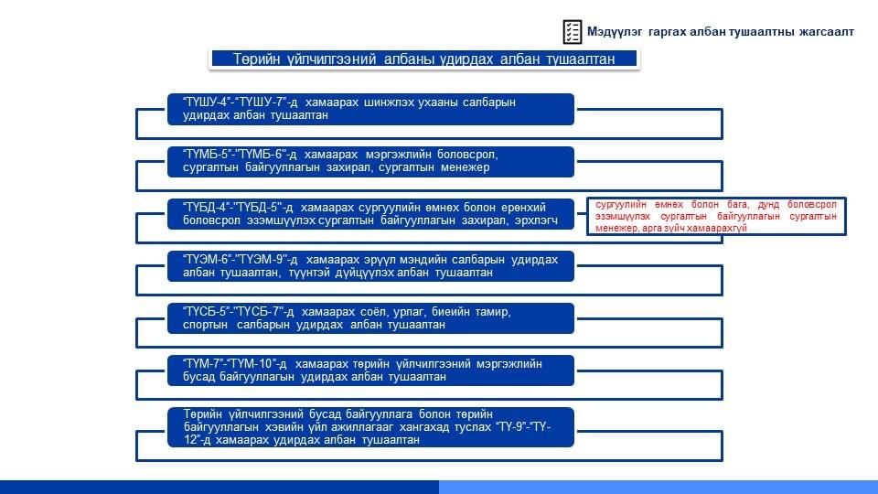МЭДҮҮЛЭГ ГАРГАХ АЛБАН ТУШААЛТНЫ ЖАГСААЛТ-ЫГ 2024.06.01-НИЙ ӨДРӨӨС ДАГАЖ МӨРДӨХӨӨР ТОГТООСОН.