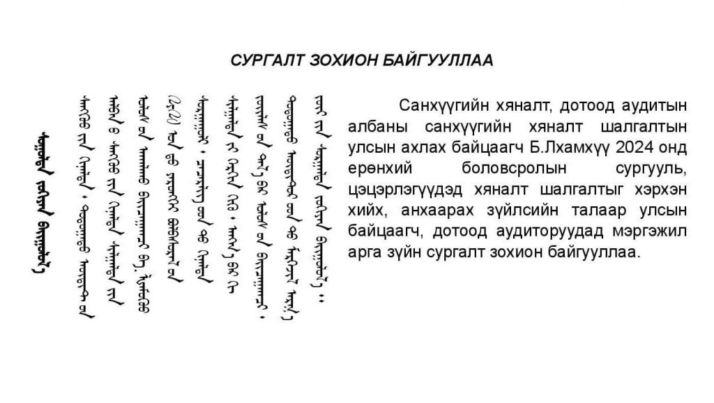 СУРГАЛТ ЗОХИОН БАЙГУУЛЛАА. Post published:1 сар 25, 2024 Post category:Мэдээ мэдээлэл / ҮЙЛ АЖИЛЛАГААНЫ ТӨЛӨВЛӨГӨӨ You Might Also Like 2022 ОНЫ 6 САР 6 сар 23, 2022 СТРАТЕГИ ТӨЛӨВЛӨГӨӨ БОЛОВСРУУЛАХ, БАТЛАХ,ХЭРЭГЖИЛТИЙГ ХАНГАХ ЖУРАМ 1 сар 2, 2023 “Сэтгэл зүйн нөөцөө хэрхэн үр дүнтэй удирдах вэ?” 11 сар 2, 2023