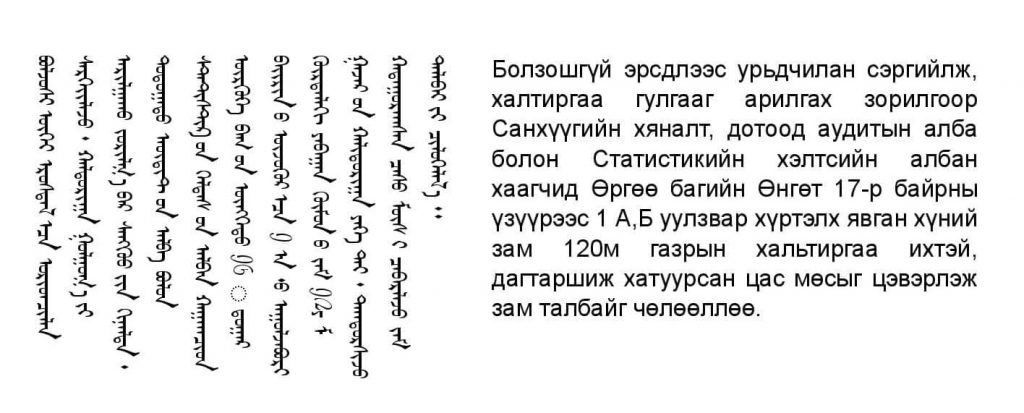 ХУВААРЬТ ГАЗРЫН ЦАС МӨС ЦЭВЭРЛЭЛЭЭ. Post published:1 сар 11, 2024 Post category:Мэдээ мэдээлэл / ҮЙЛ АЖИЛЛАГААНЫ ТӨЛӨВЛӨГӨӨ You Might Also Like 5 сар 12, 2023 Өргөдөл, гомдол шийдвэрлэлтийн 2023 оны 2-р улирлын мэдээ 6 сар 22, 2023 “ҮНЭГҮЙ ТАКСИ” ҮЙЛЧИЛГЭЭ ҮЗҮҮЛЛЭЭ. 10 сар 17, 2023