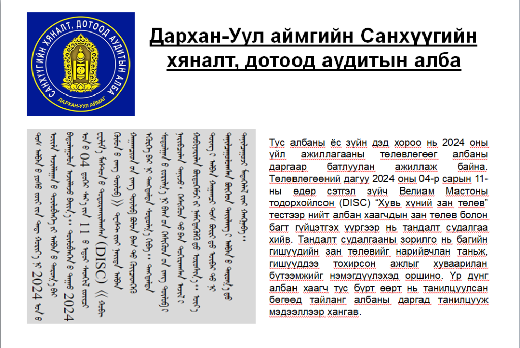 Ёс зүйн дэд хороо албан хаагчдаас судалгаа авлаа. Post published:4 сар 11, 2024 Post category:Авлигын эсрэг үйл ажиллагаа / Ёс зүйн дэд хороо / Мэдээ мэдээлэл / ҮЙЛ АЖИЛЛАГААНЫ ТӨЛӨВЛӨГӨӨ You Might Also Like ЦЭЦЭРЛЭГИЙН ХҮҮХДИЙН ХООЛНЫ ЗАРДЛЫН ХЭМЖЭЭГ ШИНЭЧЛЭН ТОГТООЖЭЭ. 2024 ОНЫ 09 САРЫН 01-НИЙ ӨДРӨӨС ЭХЛЭН МӨРДӨНӨ. 7 сар 2, 2024 ЧАНАРЫН МЕНЕЖМЕНТИЙН ТОГТОЛЦООНЫ БАТАЛГААЖУУЛАЛТАД ХАМРАГДЛАА. 2 сар 28, 2024 ЖИЖИГ ЗЭЭЛ ОЛГОЖ ЭХЭЛЛЭЭ. 7 сар 2, 2024