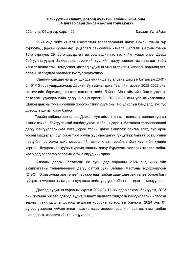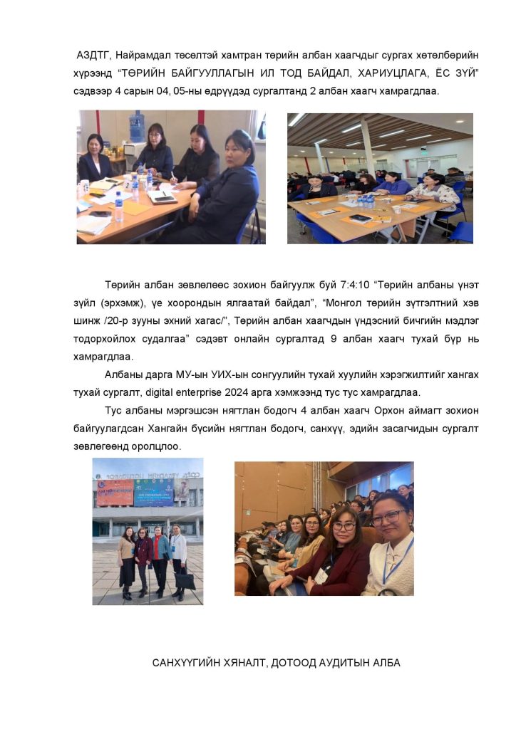 2024 ОНЫ 4 САР Post published:4 сар 22, 2024 Post category:АЖЛЫН МЭДЭЭ / ТАЙЛАН / ҮЙЛ АЖИЛЛАГААНЫ ТӨЛӨВЛӨГӨӨ You Might Also Like МЭДЭГДЭЛ 6 сар 12, 2024 СУРГАЛТ ЗОХИОН БАЙГУУЛЛАА. 1 сар 25, 2024 Шилэн дансны зөвлөмж 7 сар 7, 2025