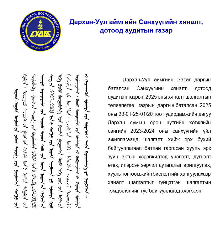 ДАРХАН-УУЛ АЙМГИЙН САНХҮҮГИЙН ХЯНАЛТ, АУДИТЫН АЛБА © 2021 ОН . ВЭБ ХӨГЖҮҮЛСЭН EWEB.MN