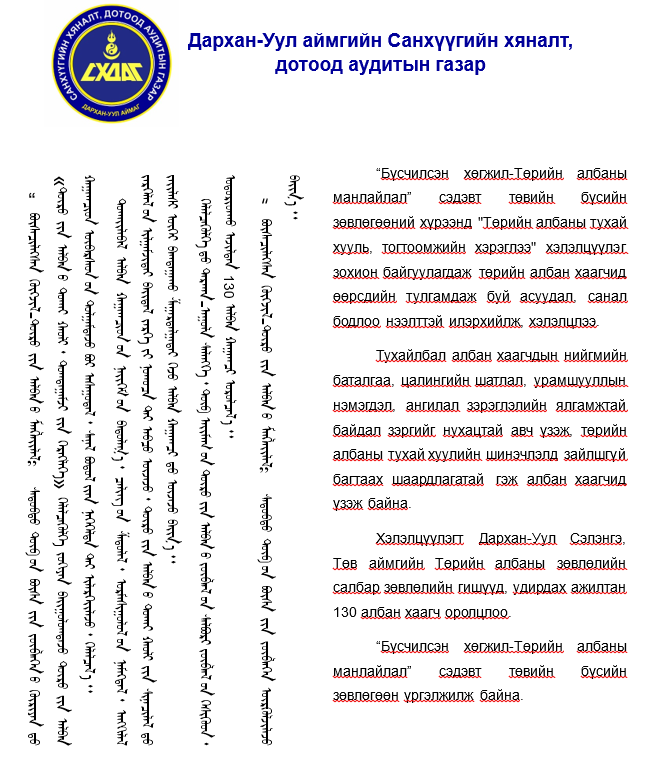 ТӨРИЙН АЛБАН ХААГЧИД ТУЛГАМДАЖ БУЙ АСУУДАЛ, САНАЛ БОДЛОО НЭЭЛТТЭЙ ИЛЭРХИЙЛЖ ХЭЛЭЛЦЛЭЭ Post published:4 сар 15, 2025 Post category:Мэдээ мэдээлэл Дархан-Уул Аймаг You Might Also Like ШИНЭТГЭЛЭЭР ТҮҮЧЭЭЛСЭН САЛБАР ЗӨВЛӨЛ 5 сар 1, 2025 ЖИЖИГ ЗЭЭЛ ОЛГОЖ ЭХЭЛЛЭЭ. 7 сар 2, 2024 Таны ЁС ЗҮЙ орчныг гэрэлтүүлнэ 11 сар 19, 2025