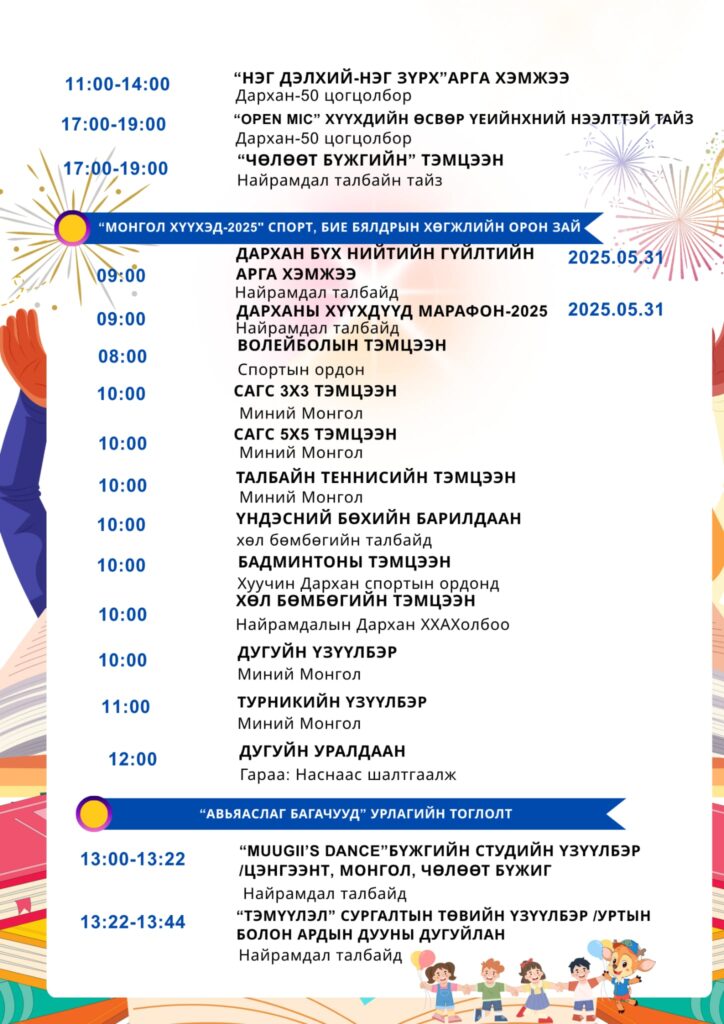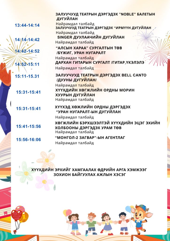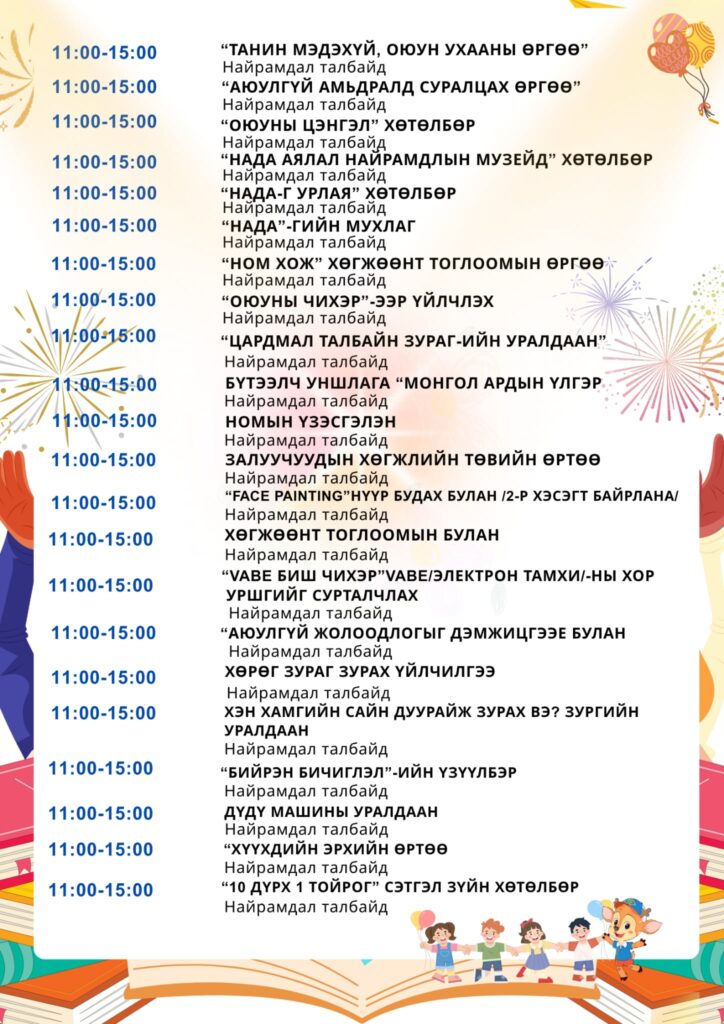 “ХҮҮХЭД ГЭР БҮЛДЭЭ АЗ ЖАРГАЛТАЙ” ОЛОН УЛСЫН ХҮҮХДИЙН ЭРХИЙГ ХАМГААЛАХ ӨДРИЙН АРГА ХЭМЖЭЭНИЙ ХӨТӨЛБӨР Post published:5 сар 30, 2025 Post category:Мэдээ мэдээлэл You Might Also Like Мэндчилгээ 10 сар 1, 2024 НҮБ-ЫН “ТӨРИЙН АЛБАНЫ ӨДӨР” ӨНӨӨДӨР ТОХИОЖ БАЙНА. 6 сар 23, 2023 2023 ОНЫ 3 САР 3 сар 24, 2023