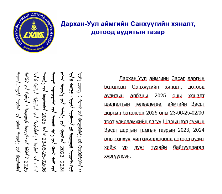 ДАРХАН-УУЛ АЙМГИЙН САНХҮҮГИЙН ХЯНАЛТ, АУДИТЫН АЛБА © 2021 ОН . ВЭБ ХӨГЖҮҮЛСЭН EWEB.MN