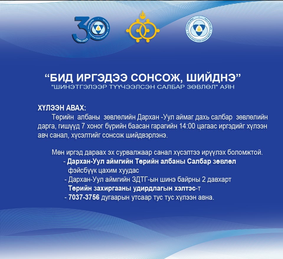 ТАСЗ-ИЙН ДАРГА, ГИШҮҮД ИРГЭДЭЭС ИРҮҮЛСЭН САНАЛ, ХҮСЭЛТИЙГ ХҮЛЭЭН АВЧ ШИЙДВЭРЛЭНЭ