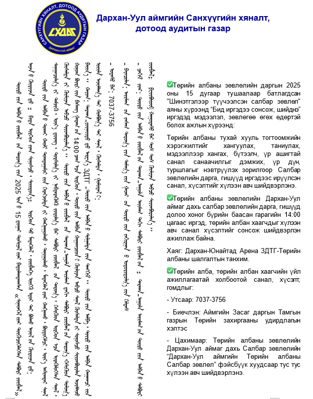ДАРХАН-УУЛ АЙМГИЙН САНХҮҮГИЙН ХЯНАЛТ, АУДИТЫН АЛБА © 2021 ОН . ВЭБ ХӨГЖҮҮЛСЭН EWEB.MN