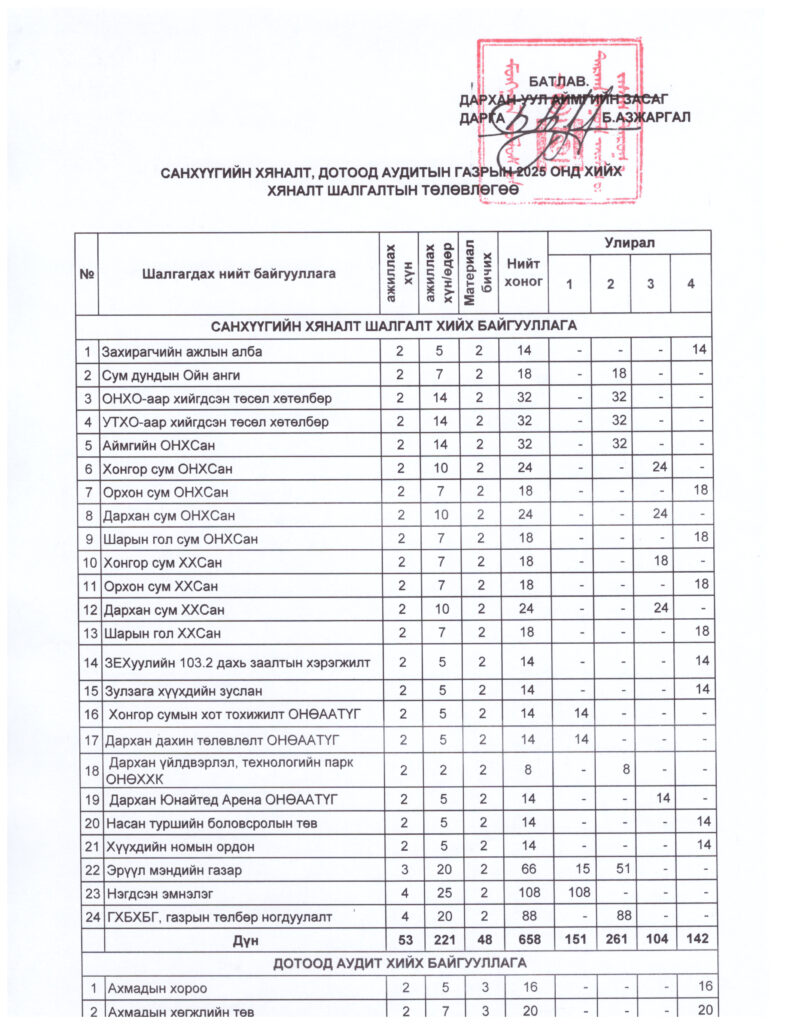 2025 ОНД ХИЙХ ХЯНАЛТ ШАЛГАЛТЫН ТӨЛӨВЛӨГӨӨ Post published:1 сар 6, 2025 Post category:ДОТООД АУДИТЫН ТӨЛӨВЛӨГӨӨ, ТАЙЛАН / Мэдээ мэдээлэл / САНХҮҮГИЙН ХЯНАЛТ ШАЛГАЛТ ТӨЛӨВЛӨГӨӨ, ТАЙЛАН / ҮЙЛ АЖИЛЛАГААНЫ ТӨЛӨВЛӨГӨӨ You Might Also Like Шарын гол сумын Соёлын төвийн үйл ажиллагаанд санхүүгийн хяналт шалгалт хийсэн тухай 9 сар 3, 2024 Авлигын эсрэг нэгдье. 3 сар 11, 2024 shilen.gov.mn дээр тайлан мэдээллээ илгээхэд 5 хоног үлдлээ. 6 сар 25, 2025