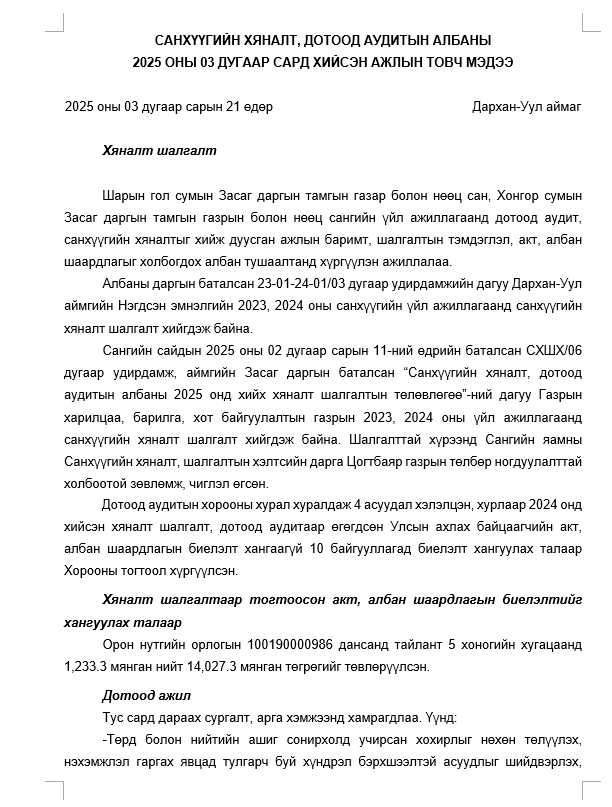 2025 оны 03 сар Post published:3 сар 25, 2025 Post category:АЖЛЫН МЭДЭЭ You Might Also Like 2021 ОНЫ 1-Р САР 1 сар 1, 2021 2024 оны 12 сар 12 сар 23, 2024 2022 ОНЫ 8 САР 8 сар 25, 2022