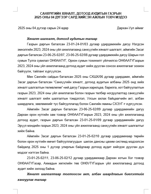 2025 оны 04 сар Post published:4 сар 24, 2025 Post category:АЖЛЫН МЭДЭЭ You Might Also Like 2024 оны 11 сар 11 сар 22, 2024 2021 ОНЫ 1-Р САР 1 сар 1, 2021 2025 оны 01 сар 1 сар 21, 2025
