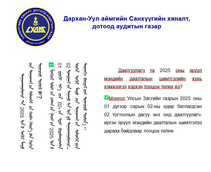 ДАРХАН-УУЛ АЙМГИЙН САНХҮҮГИЙН ХЯНАЛТ, АУДИТЫН АЛБА  © 2021 ОН . ВЭБ ХӨГЖҮҮЛСЭН EWEB.MN