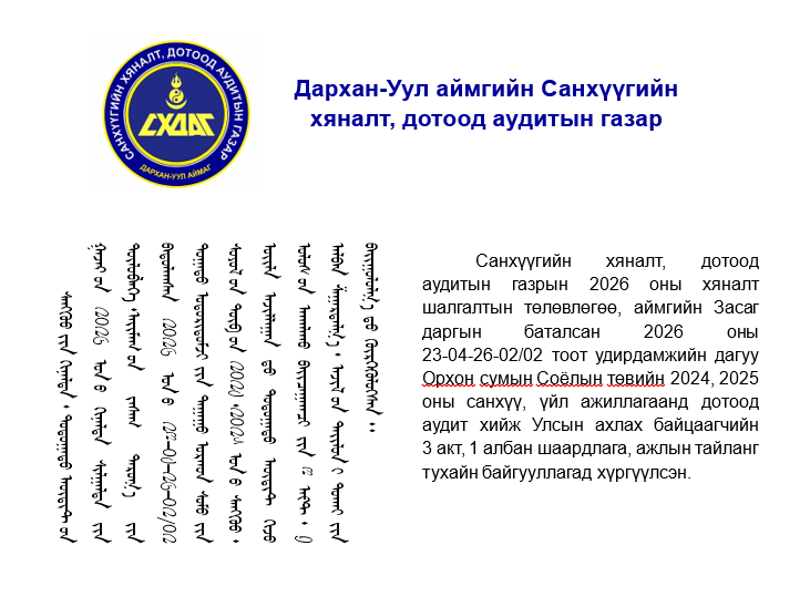 ДАРХАН-УУЛ АЙМГИЙН САНХҮҮГИЙН ХЯНАЛТ, АУДИТЫН АЛБА © 2021 ОН . ВЭБ ХӨГЖҮҮЛСЭН EWEB.MN