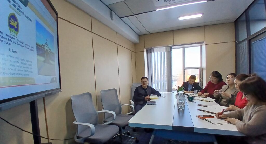 “ТӨРИЙН АЛБАНЫ ҮЙЛ АЖИЛЛАГААНД ТАВИХ ЕРӨНХИЙ ШААРДЛАГА СТАНДАРТ MNS57068:2025” СЭДЭВТ СУРГАЛТ ЗОХИОН БАЙГУУЛЛАА Post published:2 сар 4, 2026 Post category:Мэдээ мэдээлэл / ТАЙЛАН / ҮЙЛ АЖИЛЛАГААНЫ ТӨЛӨВЛӨГӨӨ You Might Also Like Мэндчилгээ 6 сар 30, 2025 2022 ОНЫ 4 ДҮГЭЭР УЛИРЛЫН ТАЙЛАН ИЛГЭЭХ ТУХАЙ 1 сар 17, 2023 Улсын салбарын дотоод аудитад Гурван шугамын загварыг хэрэглэх тухай. 11 сар 22, 2023