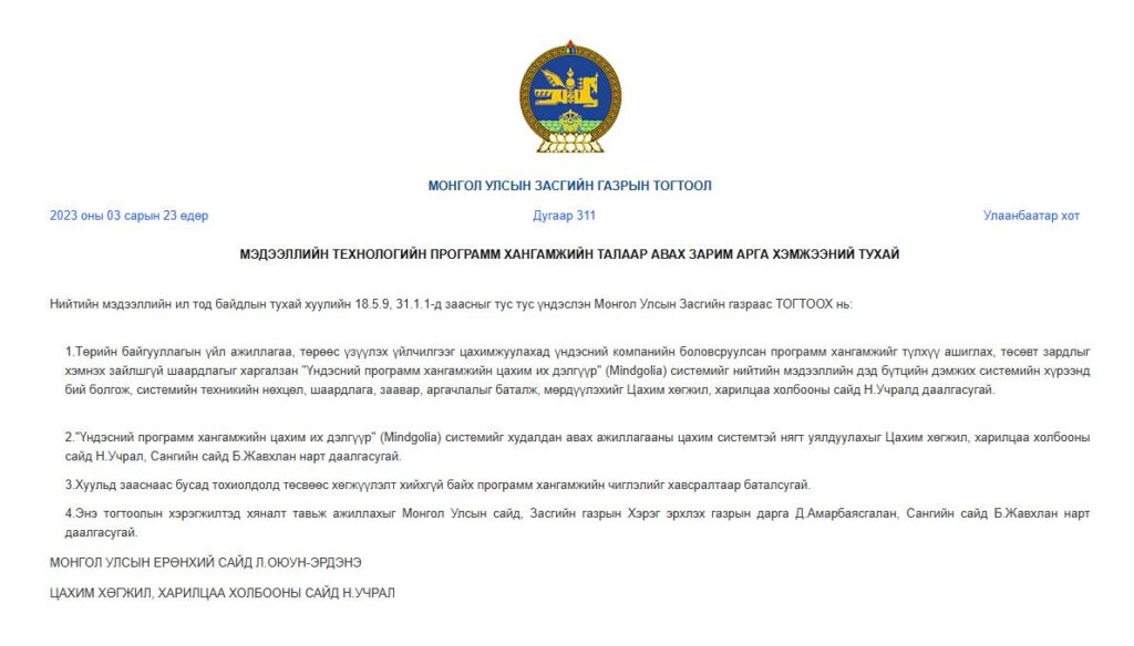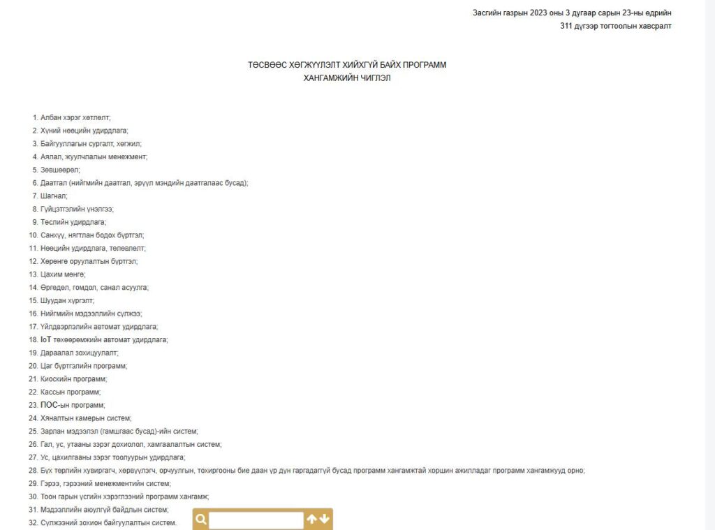 Засгийн газрын тогтоол Post published:4 сар 28, 2026 Post category:ЗГ-ЫН ТОГТООЛ You Might Also Like ХЭМЖЭЭ ТОГТООХ ТУХАЙ (ахмад настанд үзүүлэх дэмжлэг) 6 сар 24, 2025 Төрийн захиргааны албан хаагчид мөнгөн урамшуулал олгох тухай 3 сар 1, 2024 ТӨРИЙН ҮЙЛЧИЛГЭЭНИЙ АЛБАН ХААГЧИЙН ЦАЛИНГИЙН ТАЛААР АВАХ АРГА ХЭМЖЭЭНИЙ ТУХАЙ 1 сар 19, 2026