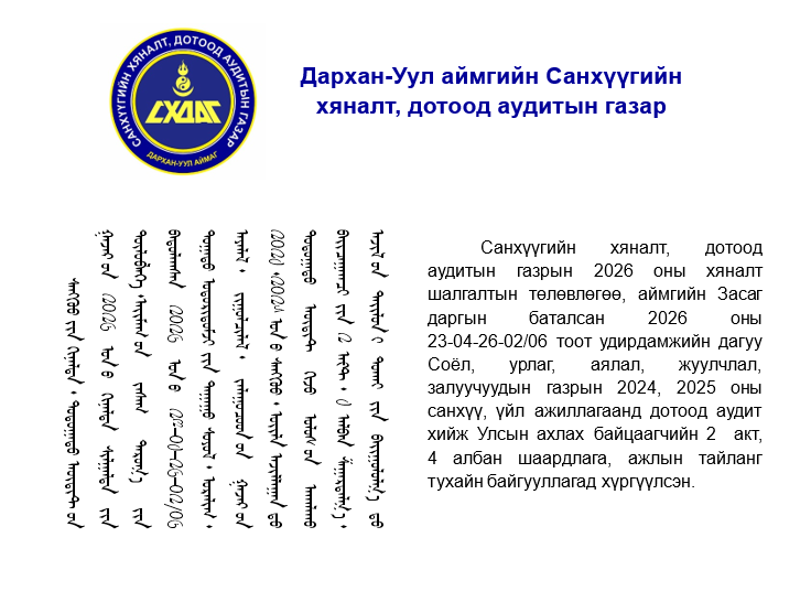 ДАРХАН УУЛ АЙМГИЙН САНХҮҮГИЙН ХЯНАЛТ, ДОТООД АУДИТЫН ГАЗАР